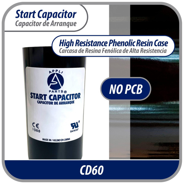 Certificado: Un capacitor tipo CD60 es un capacitor de arranque de motor monofasico, de tipo electrolitico, no polarizado, de alta capacitancia y uso intermitente, disenado para proporcionar un alto par de arranque durante unos segundos al encender el motor.