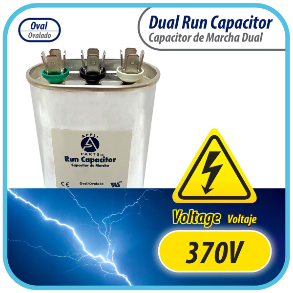 Appli Parts Condensador Capacitor de Marcha 80+5 Mfd uF (microfaradios) 370VAC CBB65 Universal Aire acondicionado y otras aplicaciones Ovalado UL E476928 7.7cm Ancho 4.5cm Prof 10.2cm Alto CON-80/5-370