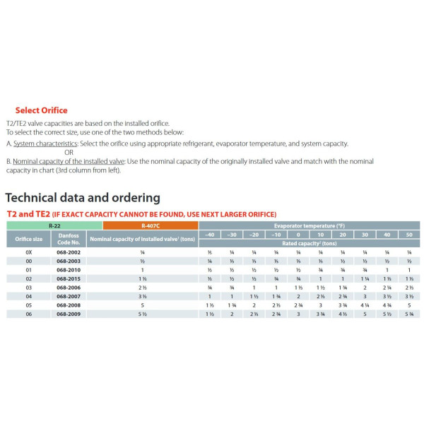 Danfoss 068Z3209 Cuerpo de Valvula de Expansion TE 2 para R22, R407C Ecualizacion Externa 3/8 x 1/2 x 1/4 Flare, Capacidad desde 1/4 hasta 5-1/2 tons, capacidad determinada por Orificio de venta separada, 068Z3238